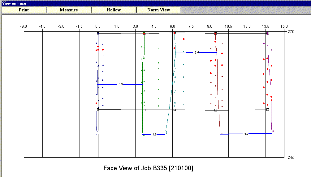Figure 4 is a face (front view) of the same shot. The azimuth errors on holes 2 and 3 are visible, but they are not immediately obvious.